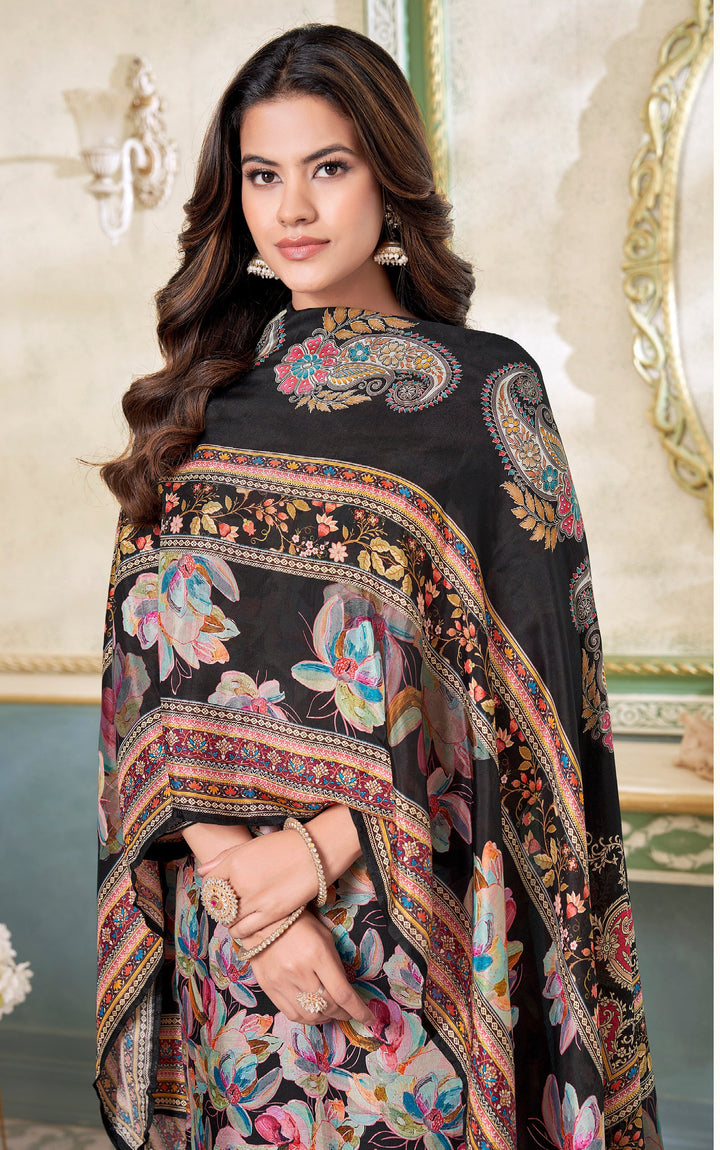 Maslin Silk Floral Printed Salwar Kameez Set with Hand Work