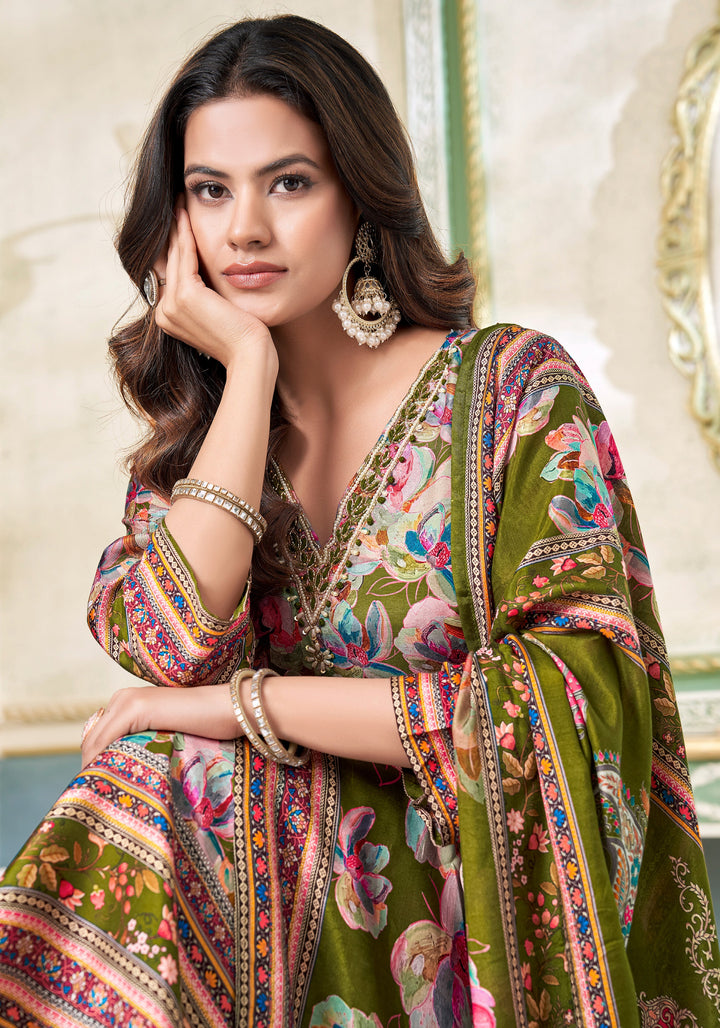 Maslin Silk Floral Printed Salwar Kameez Set with Hand Work