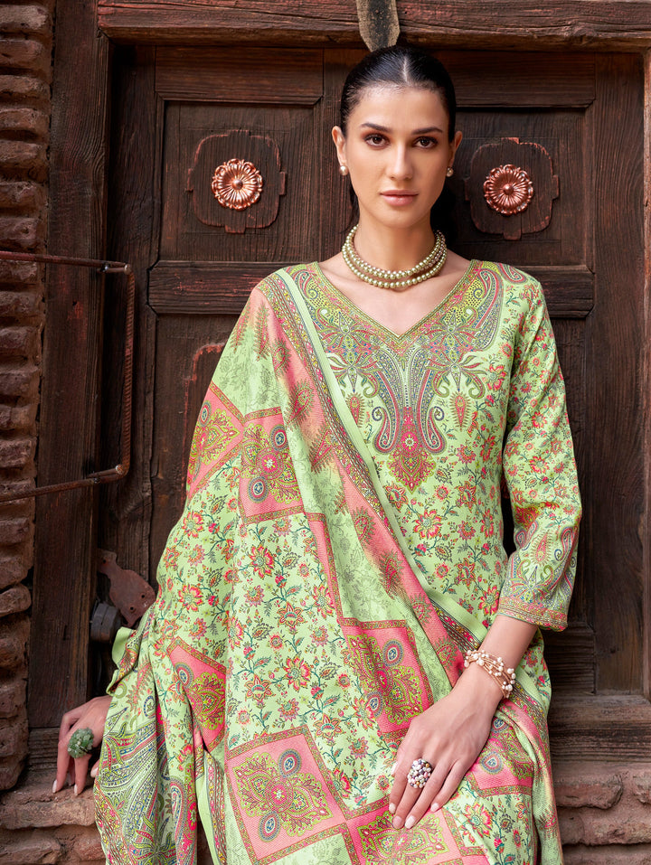 This winter-ready viscose pashmina suit blends rich texture with sophisticated design β an elegant and cozy addition to your ethnic wardrobe for the festive season.