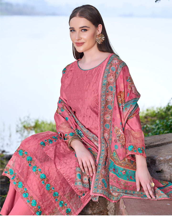 Embroidered Viscose Silk Salwar Kameez Set with Palazzo Pants & Printed Dupatta