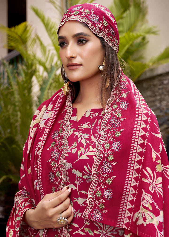 Rayon Digital Printed Salwar Kameez Set with Embroidered Daman