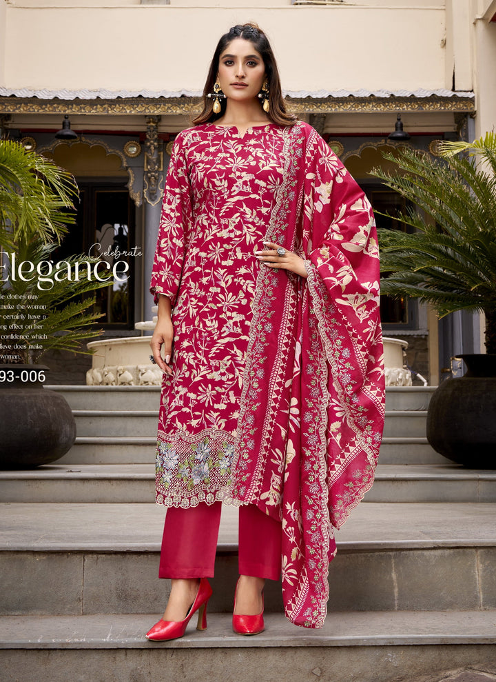 This designer salwar kameez set blends digital prints, modern silhouettes and embroidery details β offering effortless elegance for any special occasion.