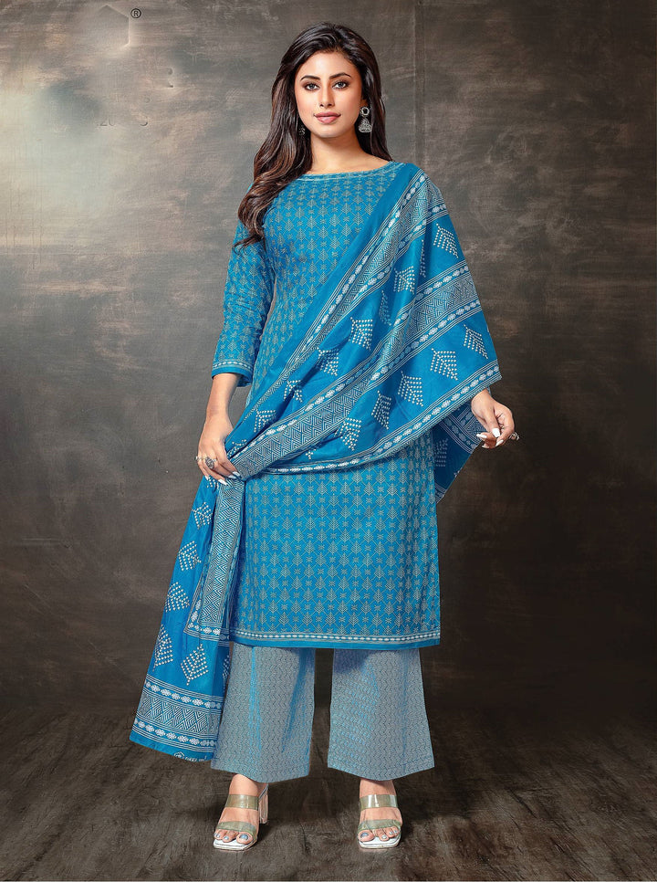 3-PIECE COTTON SET: Includes Kameez, Bottom, and Dupatta – a complete, ready-to-wear outfit perfect for daily comfort and casual ethnic style. Made from soft, breathable cotton with elegant prints, this set is ideal for everyday wear or festive occasions like Diwali, Rakhi, or Eid.