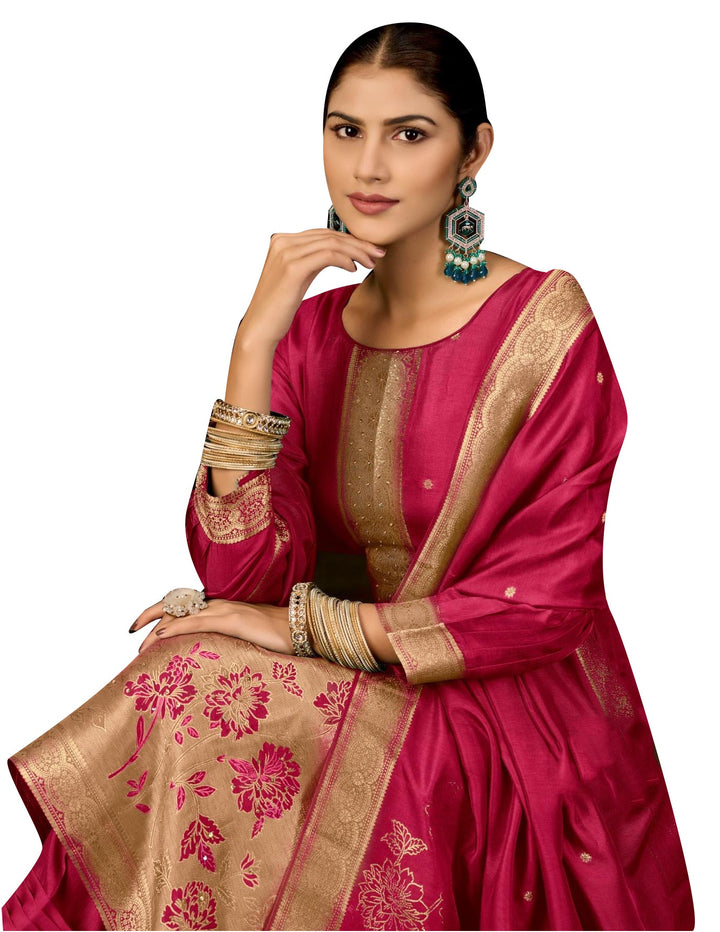 This jacquard silk salwar kameez set blends regal weaving with modern refinement β making it the perfect choice for celebrations, receptions, and elegant festive wear.