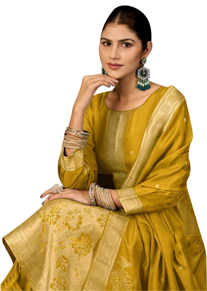 This jacquard silk salwar kameez set blends regal weaving with modern refinement β making it the perfect choice for celebrations, receptions, and elegant festive wear.
