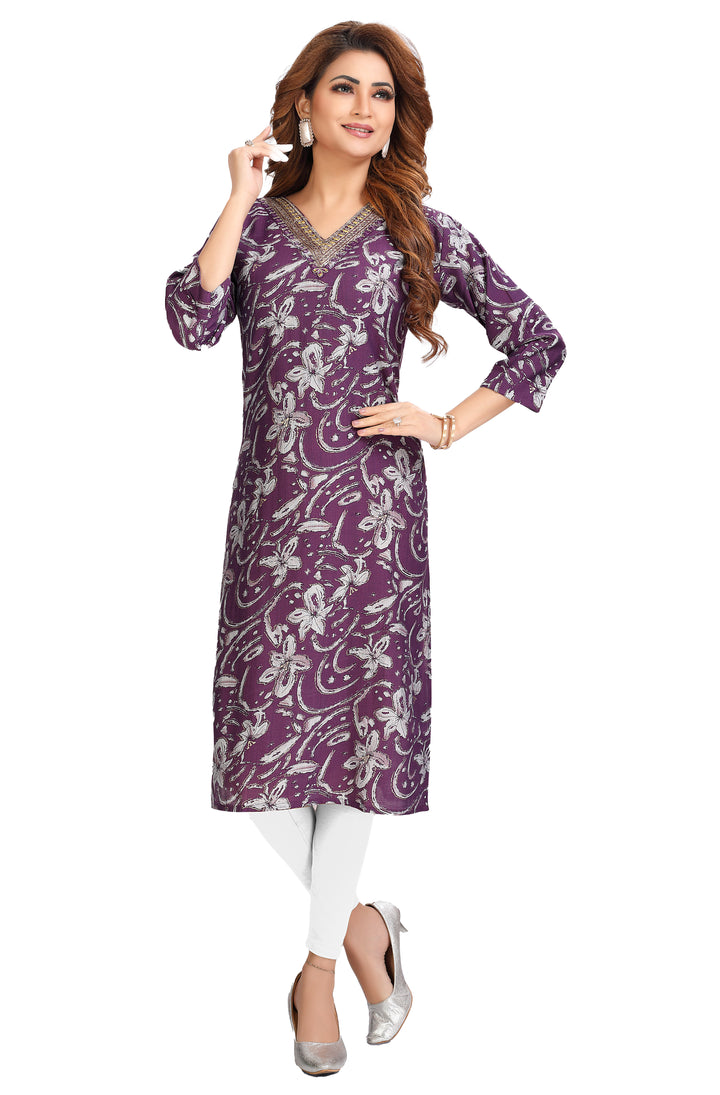 - ELEGANT ROMAN SILK KURTI/TUNIC β Crafted from premium roman silk fabric with rich all-over digital prints for a refined, polished look.