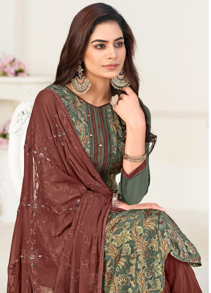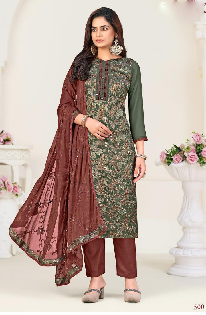 Ladyline Georgette Brasso Salwar Kameez with Mirror Work, Chiffon Embroidered Dupatta & Santoon Silk Pants β Women's 3-Piece Ethnic Set β Festive & Party Wear Dress