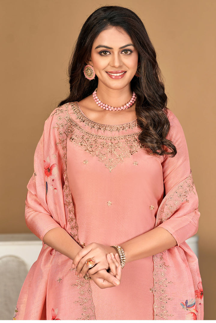 Ladyline Party Wear Shimmer Silk Embroidered Salwar Kameez Suit Set for Women - Elegant Golden Embroidery β Cutwork Silk Dupatta - Indian Formal Dress